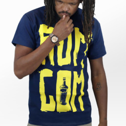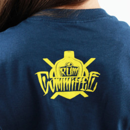 Official Rum Committee heavy quality t-shirt in black white charcoal grey print. Full-size RumCom type logo on the front and Rum Committee badge on the back between the shoulders. Made with rum laced print! Cop yours now.